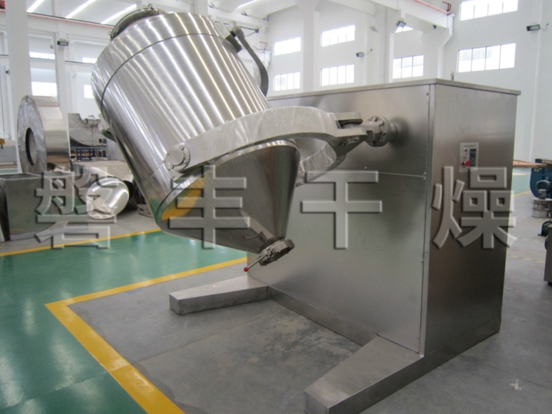 結構:該機由機座、傳動系統、電器控制系統、多向運動機構、混合筒等部件組成。與物料直接接觸的混合筒采用優質不銹鋼材料制造,桶體內外壁均經鏡面拋光。